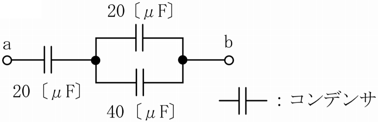 図に示す回路の端子 ab 間の合成静電容量は幾らになるか。